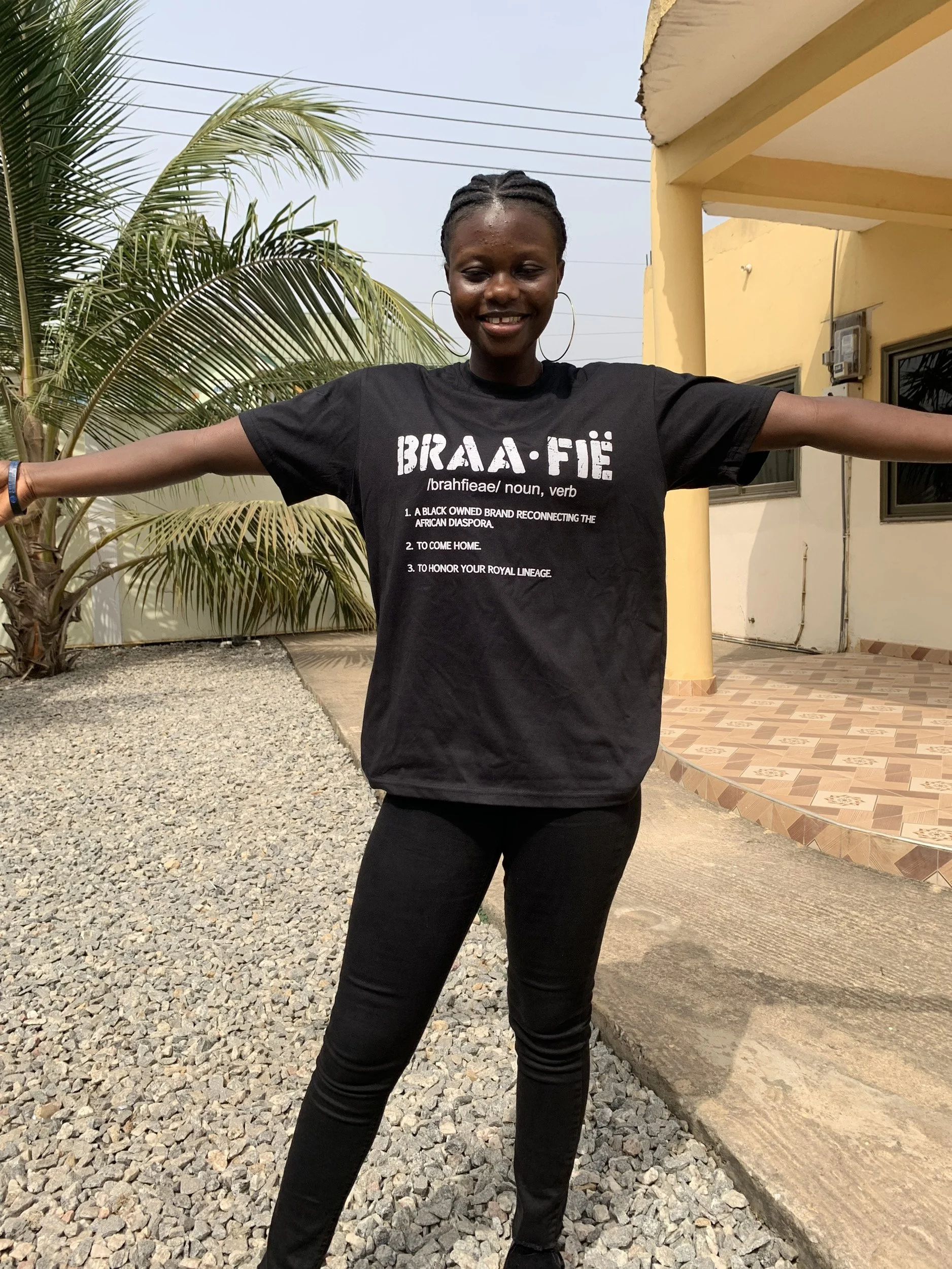 “I won a competition on YouTube and won my t-shirt! The owner and I created content together as she shared her mission with me. I fully endorse the BRAAFIË movement. I create content that helps bridge the gap among the diaspora.”